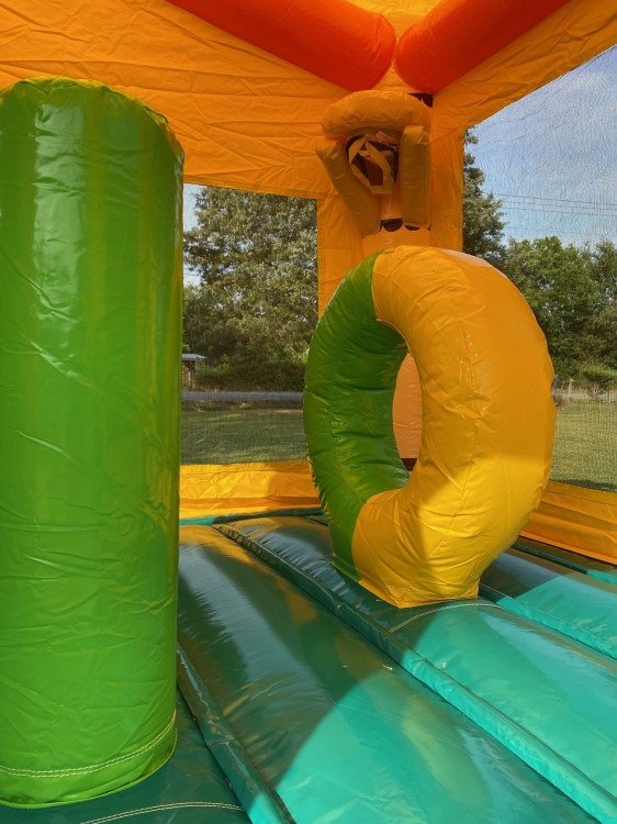 Kids love the open jumping space where they can bounce freely before racing to the slide exit, and the eye-catching palm tree graphics and Hawaiian colors make it a visual centerpiece that sets the tone for the entire party. Whether you're planning a tropical luau, a jungle safari birthday, or just want to beat the Tennessee heat with water play, the Aloha delivers nonstop energy and laughter. It works beautifully for church picnics, neighborhood block parties, and spring or summer festivals across Rutherford County, and it transitions effortlessly from wet to dry use depending on your event needs and weather conditions.