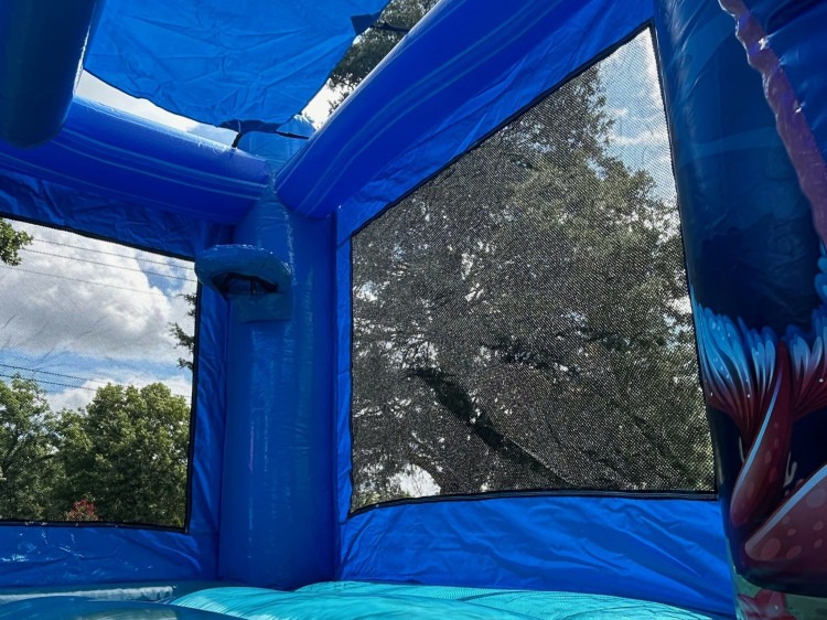 The Little Mermaid Combo is a vibrant undersea-themed inflatable featuring a bounce house, 10-foot water slide, and splash zone, available for rent throughout Murfreesboro and the surrounding Middle Tennessee area. This enchanting unit brings the magic of the ocean to backyards and events across Rutherford County and nearby communities, creating an immersive aquatic experience that turns any celebration into an unforgettable adventure under the sea.