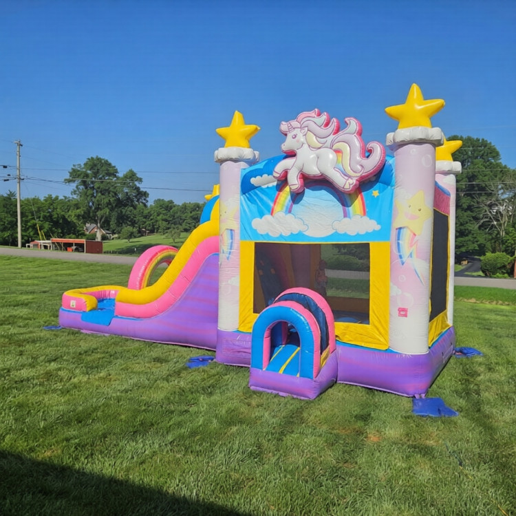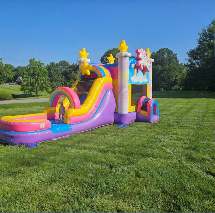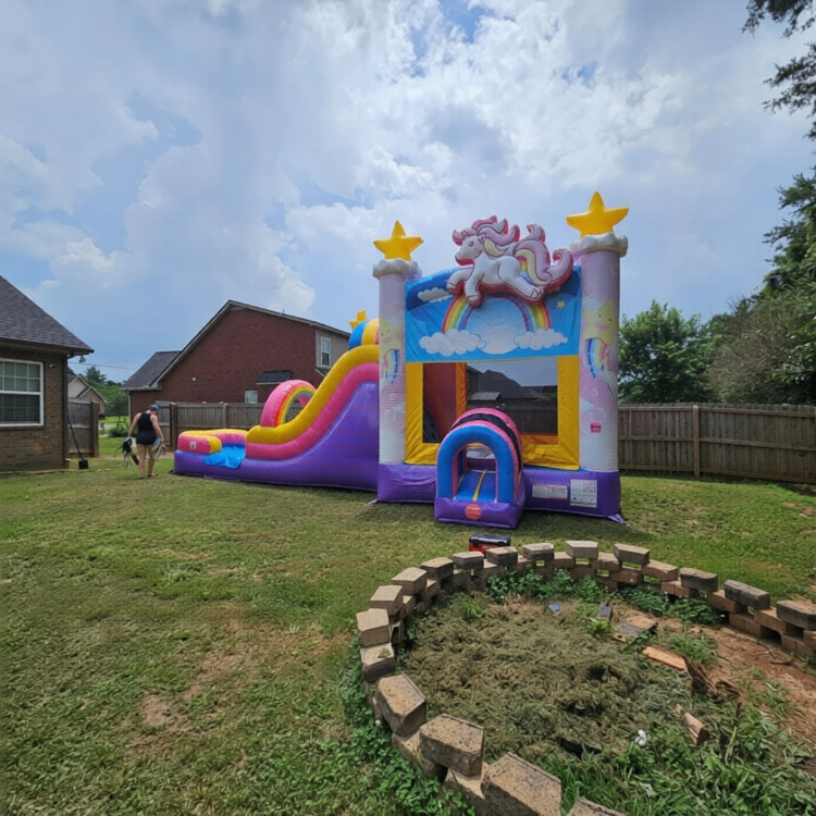 Girls' birthday parties across Murfreesboro, Smyrna, and La Vergne have crowned Rarity their go-to unicorn experience, and it's easy to see why. The vibrant rainbow theme photographs beautifully, the enclosed tunnel adds an element of discovery, and the rock wall-to-water slide sequence gives every kid a genuine adventure arc from start to finish. It's consistently one of the most talked-about rentals at every event it attends throughout Rutherford County.